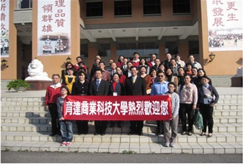 臺灣育達商業(yè)科技大學(xué)成立于1955年,是一個(gè)規劃雄偉美麗、學(xué)習環(huán)境鋪陳的十分人性化的校園。學(xué)校董事長(cháng)、校長(cháng)、教導主任在學(xué)校歡迎了我們。董事長(cháng)在歡迎會(huì )上致辭,簡(jiǎn)要介紹了育達商業(yè)科技大學(xué)由“務(wù)實(shí)的傳奇教育家-王廣亞” 創(chuàng )辦的六十余載的創(chuàng )建歷程。在參觀(guān)校園中,行政部主任對我們提出的后勤管理和資金來(lái)源及使用等方面的問(wèn)題均作了詳盡和實(shí)在的解答。