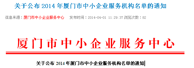 2014年廈門(mén)市中小企業(yè)服務(wù)機構名單(共71家)