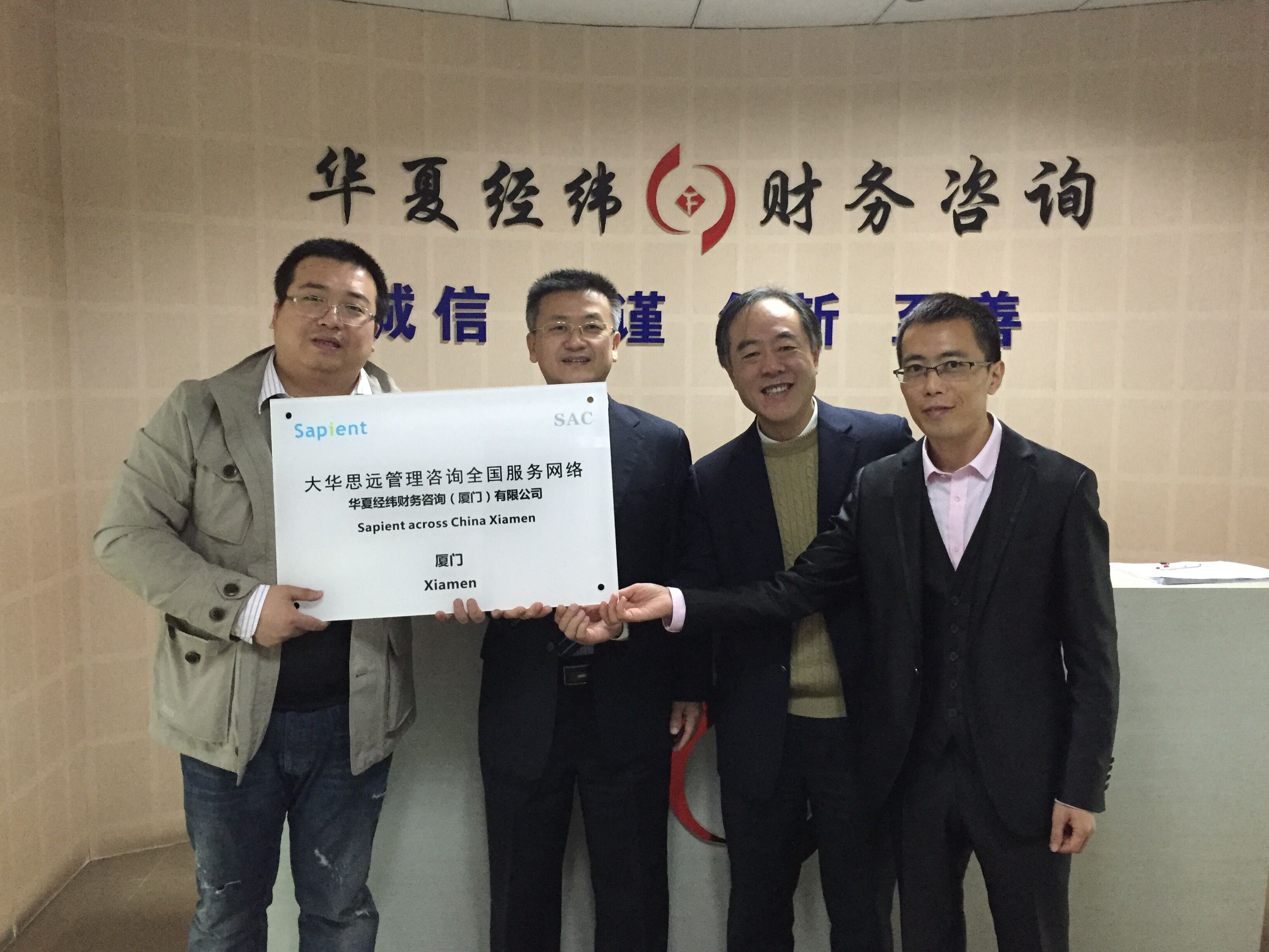 2016年1月6日上午,華夏經(jīng)緯財務(wù)咨詢(xún)(廈門(mén))有限公司與大華思遠(北京)管理咨詢(xún)有限公司戰略合作簽約儀式暨授牌在公司舉行。此次簽約,標志著(zhù)雙方建立了穩固的戰略合作伙伴關(guān)系,為華夏經(jīng)緯財務(wù)咨詢(xún)(廈門(mén))有限公司在全國性戰略布局持續、健康、快速發(fā)展奠定了良好的基礎。